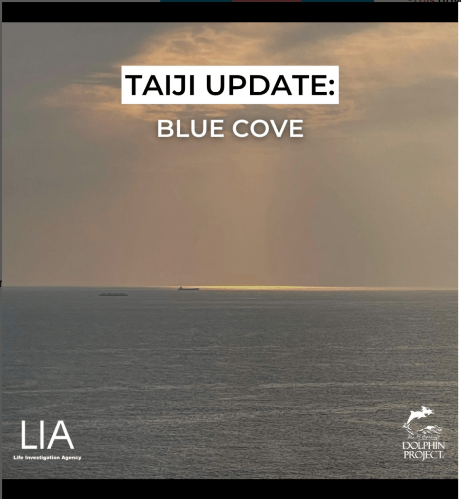 On the last day of the season, it felt right to acknowledge the distinct value of every individual’s role, including my own as one of those praying over the situation, the boaters, who are capable, I believe, of seeing themselves as protectors, rather than hunters, and the dolphins themselves; and it felt calming to know that each of these were meant to be directed by God. While I am devastated to have seen much more graphic imagery earlier today than I have ever seen before of the revolting brutality of Taiji dolphin killings, I am grateful it is a blue cove day. It is also incredibly inspiring to see the brave and loving stand taken again today by protesters whose dedication and courage, I believe, will bear fruit.